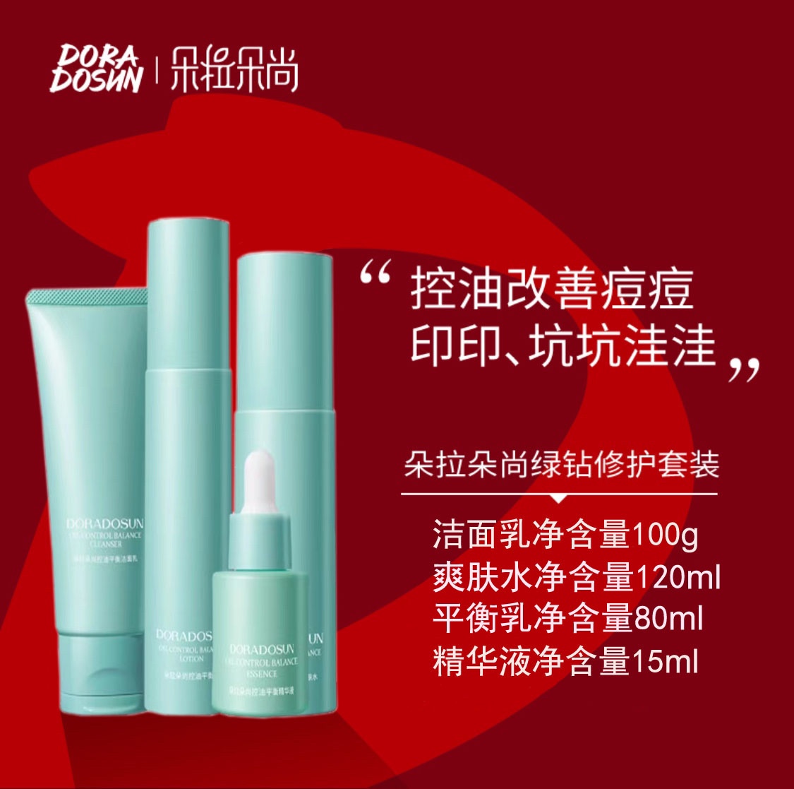 朵拉朵尚绿钻套装控油补水保湿改善痘痘粉刺修复痘印收缩毛孔保湿