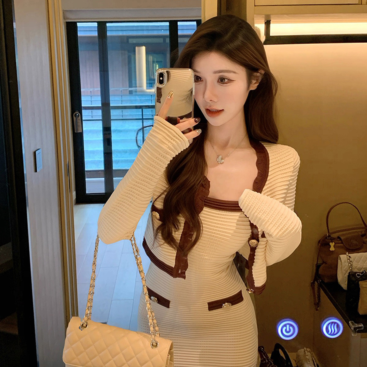 - 衫女针织毛衣裙包臀长款打底连衣裙