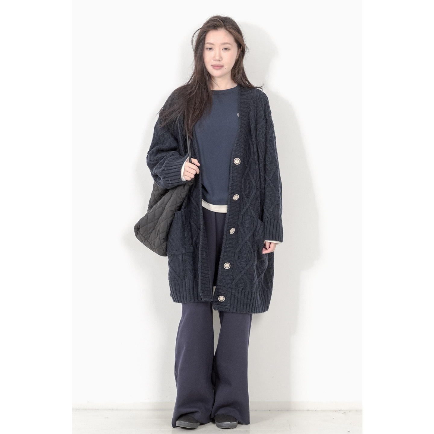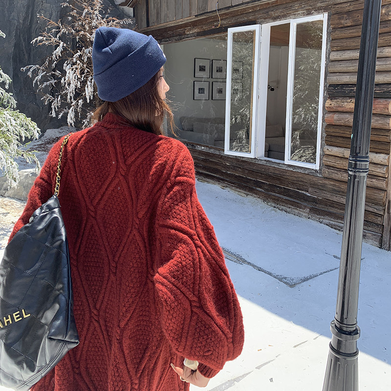 韩单时髦麻花门襟粗针毛衣开衫中长款慵懒宽松冬季羊毛针织衫外套