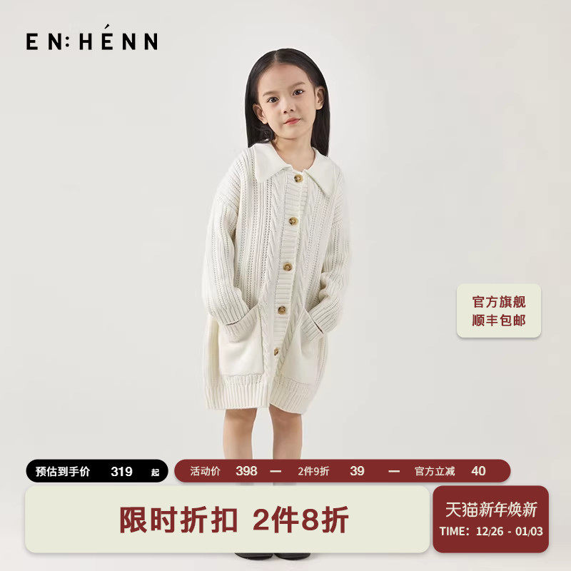enhenn儿童麻花针织开衫2025春秋新款洋气男童毛衣女童中长款外套