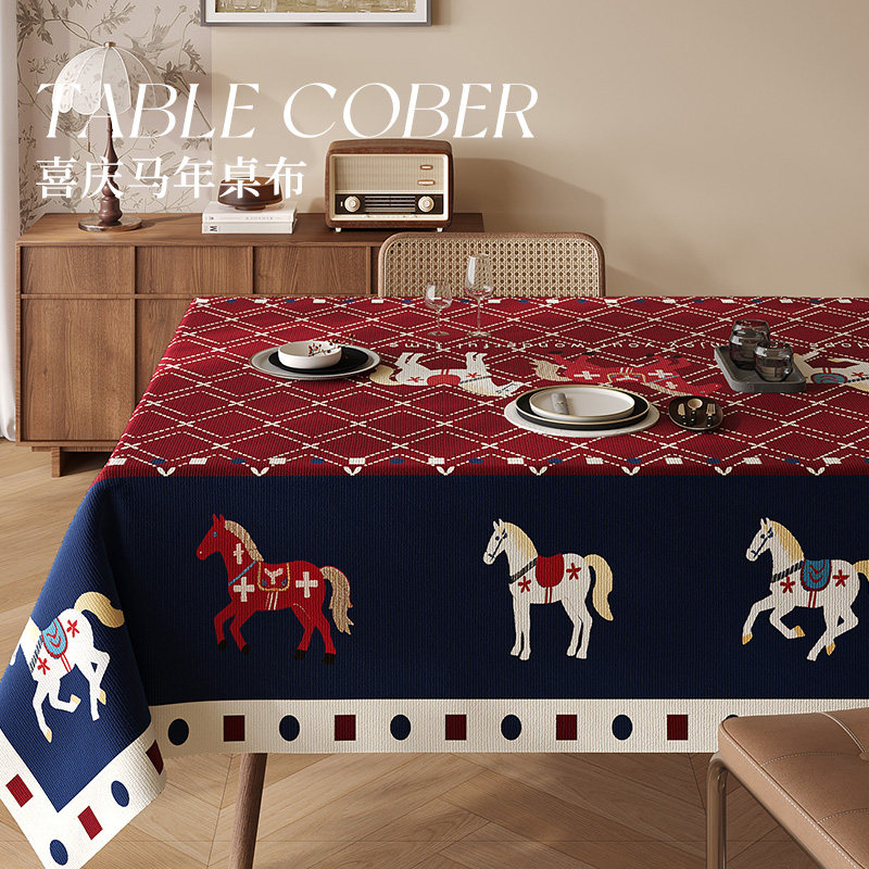 马年新款桌布棉麻布艺防水防油免洗长方形桌子遮盖轻奢餐桌茶几布