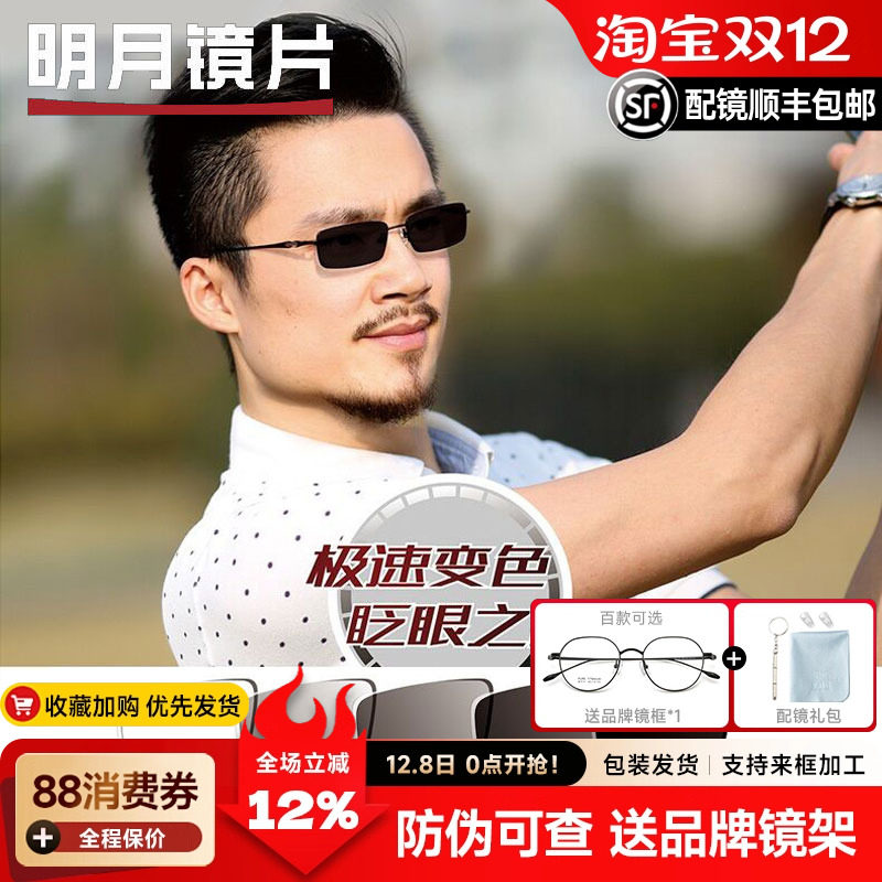 明月1.67 1.71变色镜片非球面近视 膜变防紫外线 太阳镜墨镜超薄