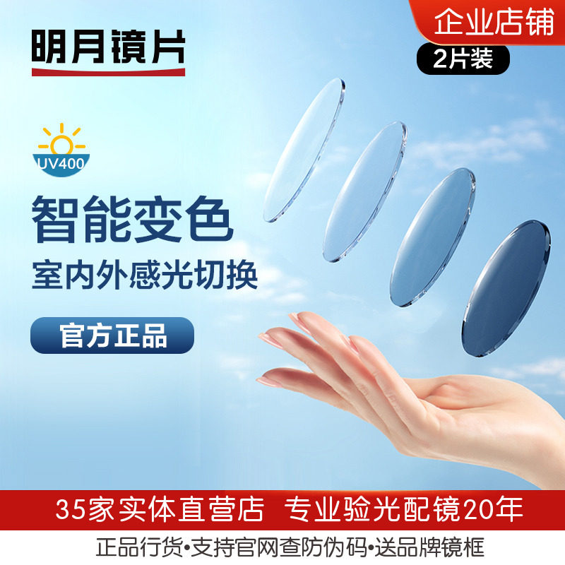 明月镜片1.56/1.61/1.67超韧膜层变色近视眼镜膜变超薄非球面变灰