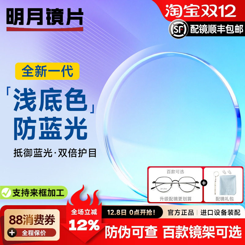 明月防蓝光浅底色1.67 1.74高清超薄镜片非球面可配高度数近视镜