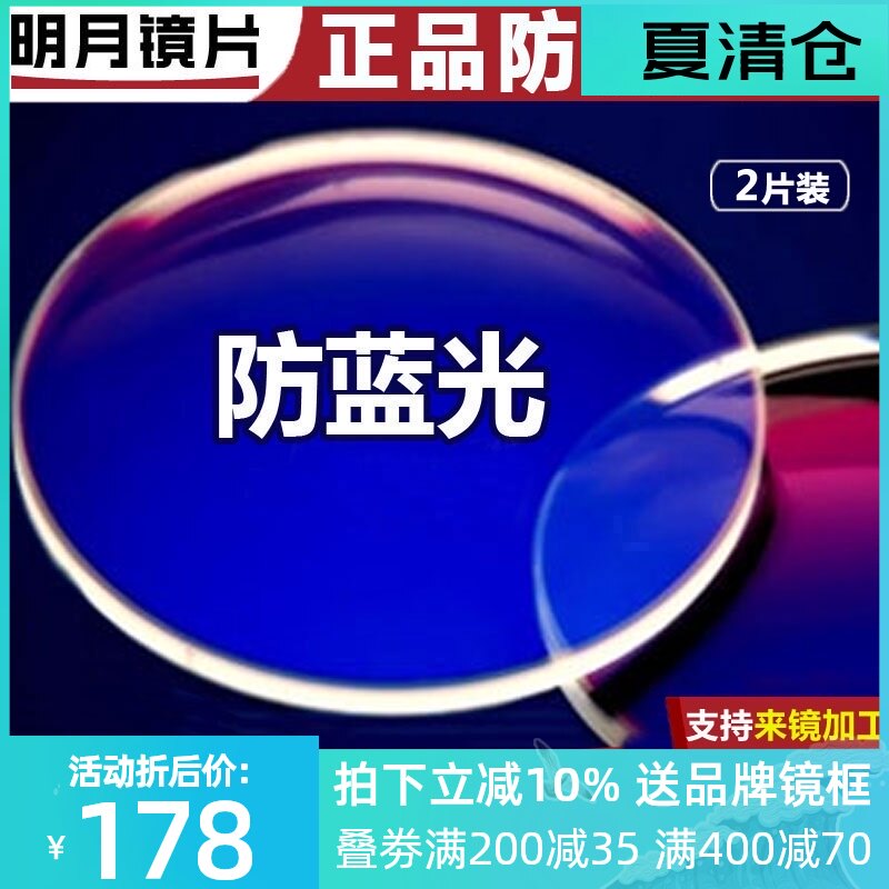 正品明月防蓝光镜片1.56/1.60/1.67/1.71非球面定制近视超薄镜片