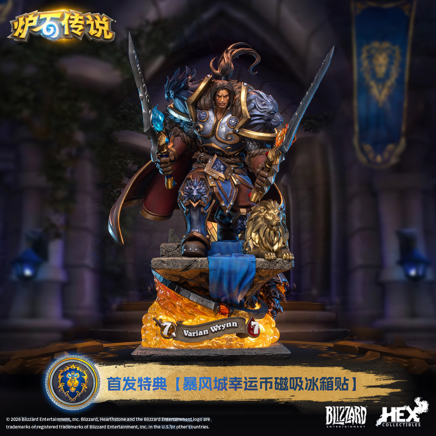 Blizzard暴雪游戏官方正版周边炉石传说瓦里安·乌瑞恩馆藏雕像