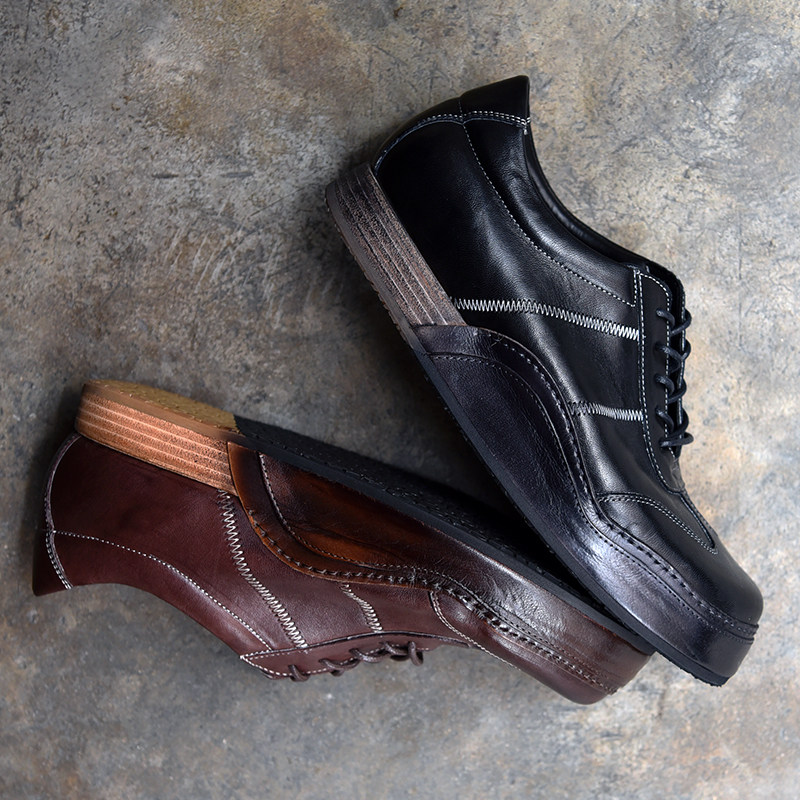 轻量 昱谷®重洗水擦色马皮 山系原宿德训鞋 vintage拼接混搭板鞋