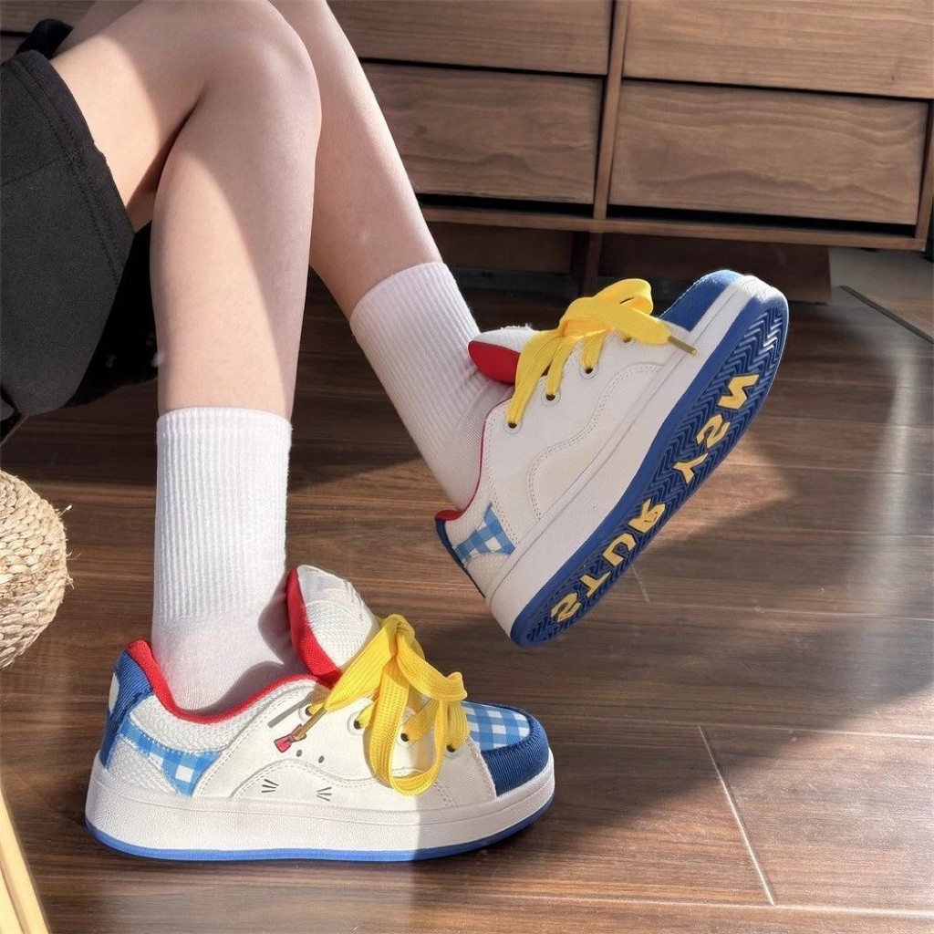 新款国潮凯特猫面包鞋拼色ins潮百搭休闲运动鞋女原宿港风板鞋女
