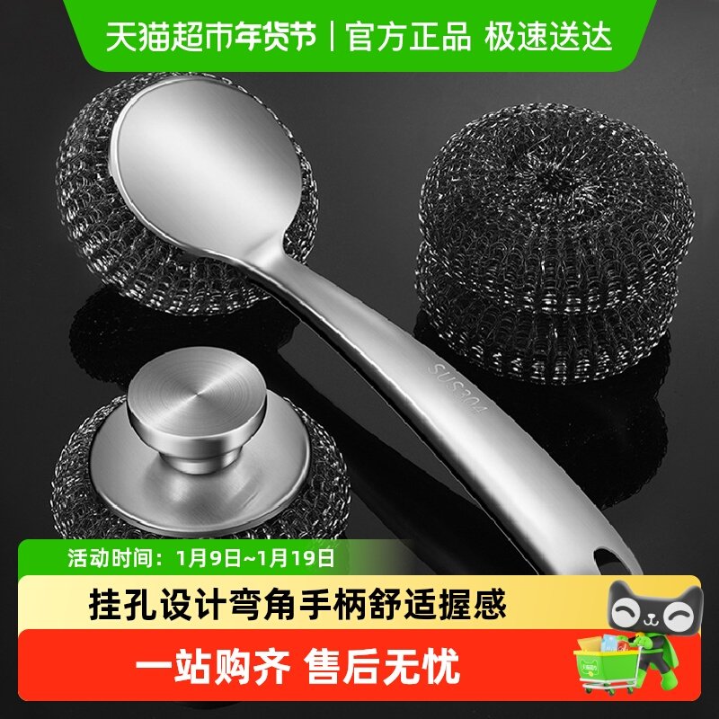 大号不锈钢清洁球厨房刷锅洗碗神器铁丝球家用带手柄不掉丝钢丝球