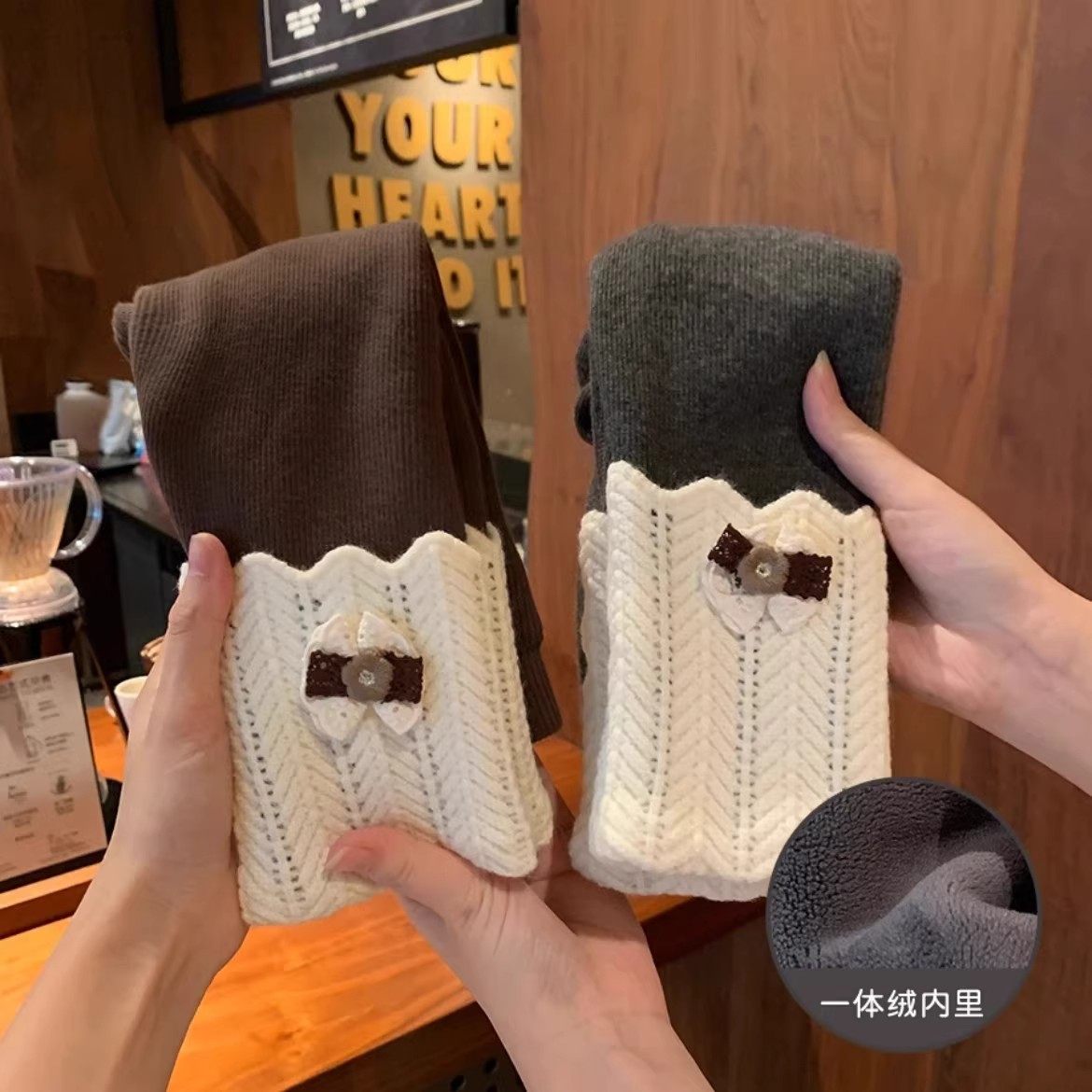 【SEQB小象Q比】冬款加绒一体绒毛线打底裤松紧腰裤子+可拆卸裤腿