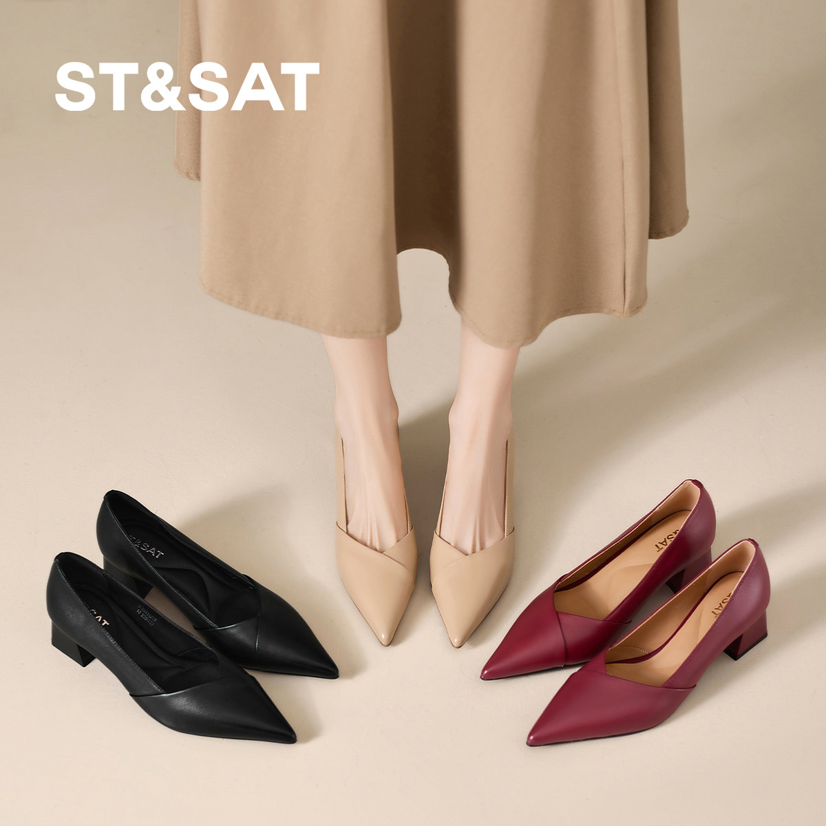 星期六高跟鞋绝美气质浅口单鞋女春软底不累脚粗跟百搭通勤小皮鞋