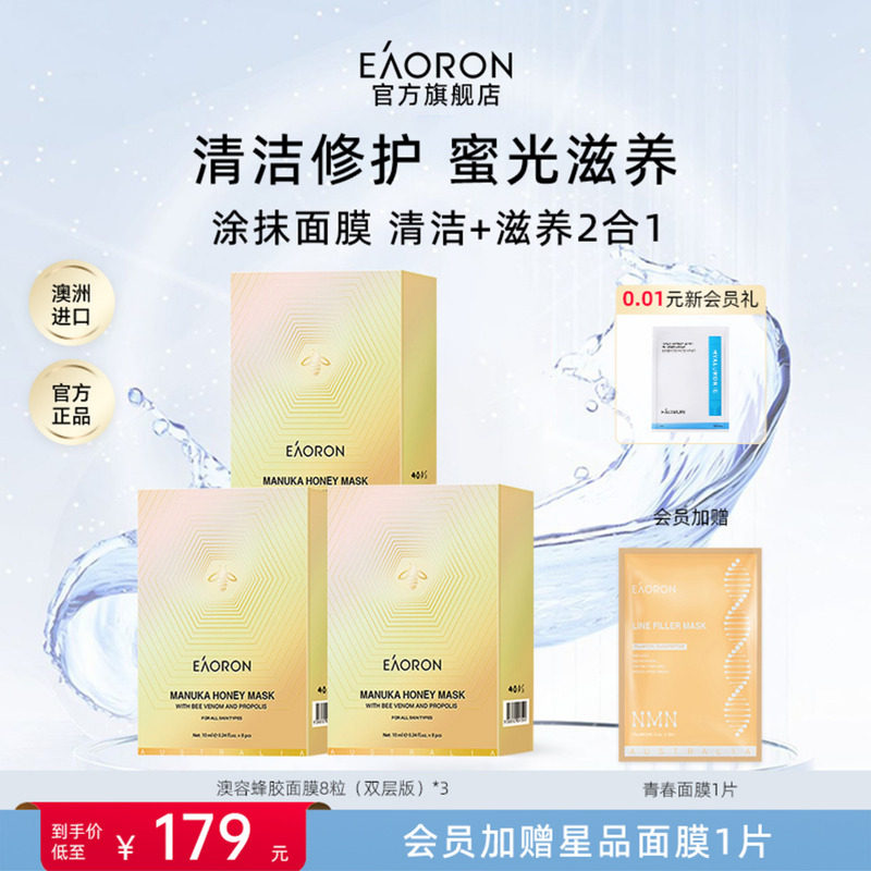 澳洲eaoron蜂胶蜂毒面膜保湿补水水光针涂抹式紧致收毛孔10ml*8盒