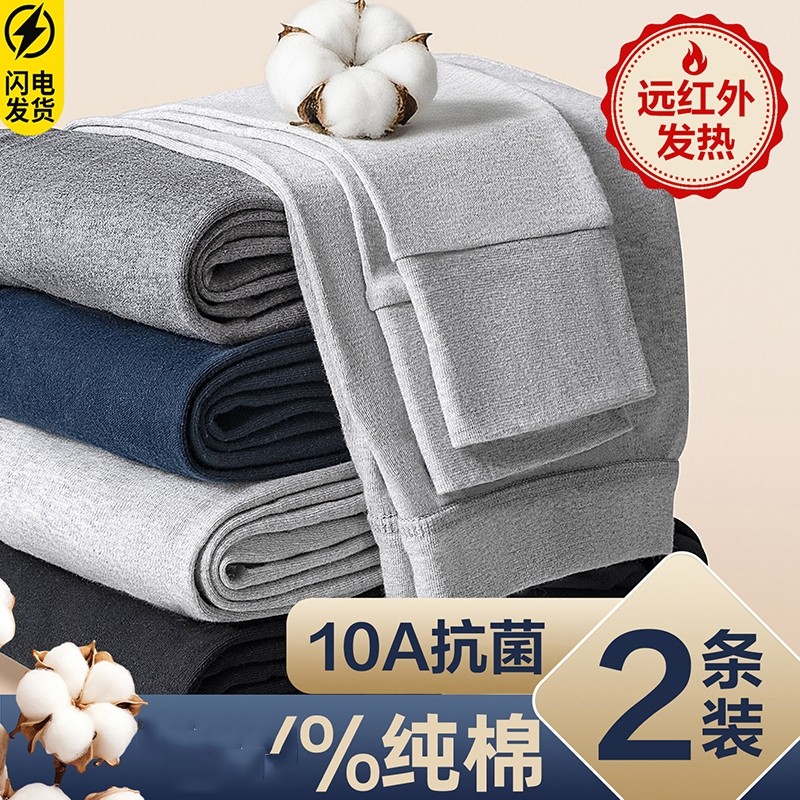 男士秋裤男款纯棉保暖裤春秋薄款打底裤棉裤青少年全棉毛线裤外穿