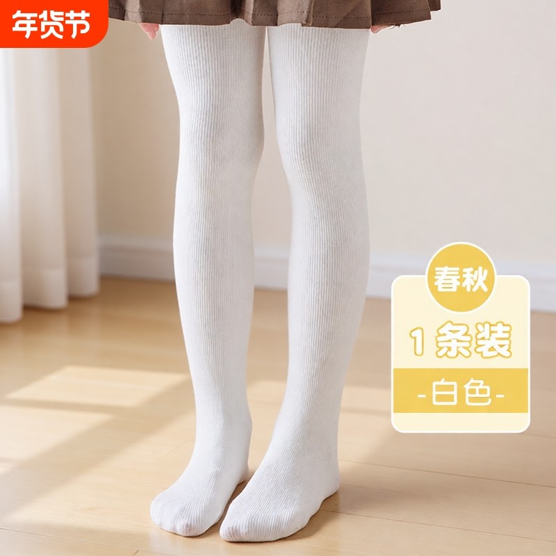 女童打底裤春秋薄款纯棉白色打底袜宝宝裤袜外穿配裙子儿童连裤袜