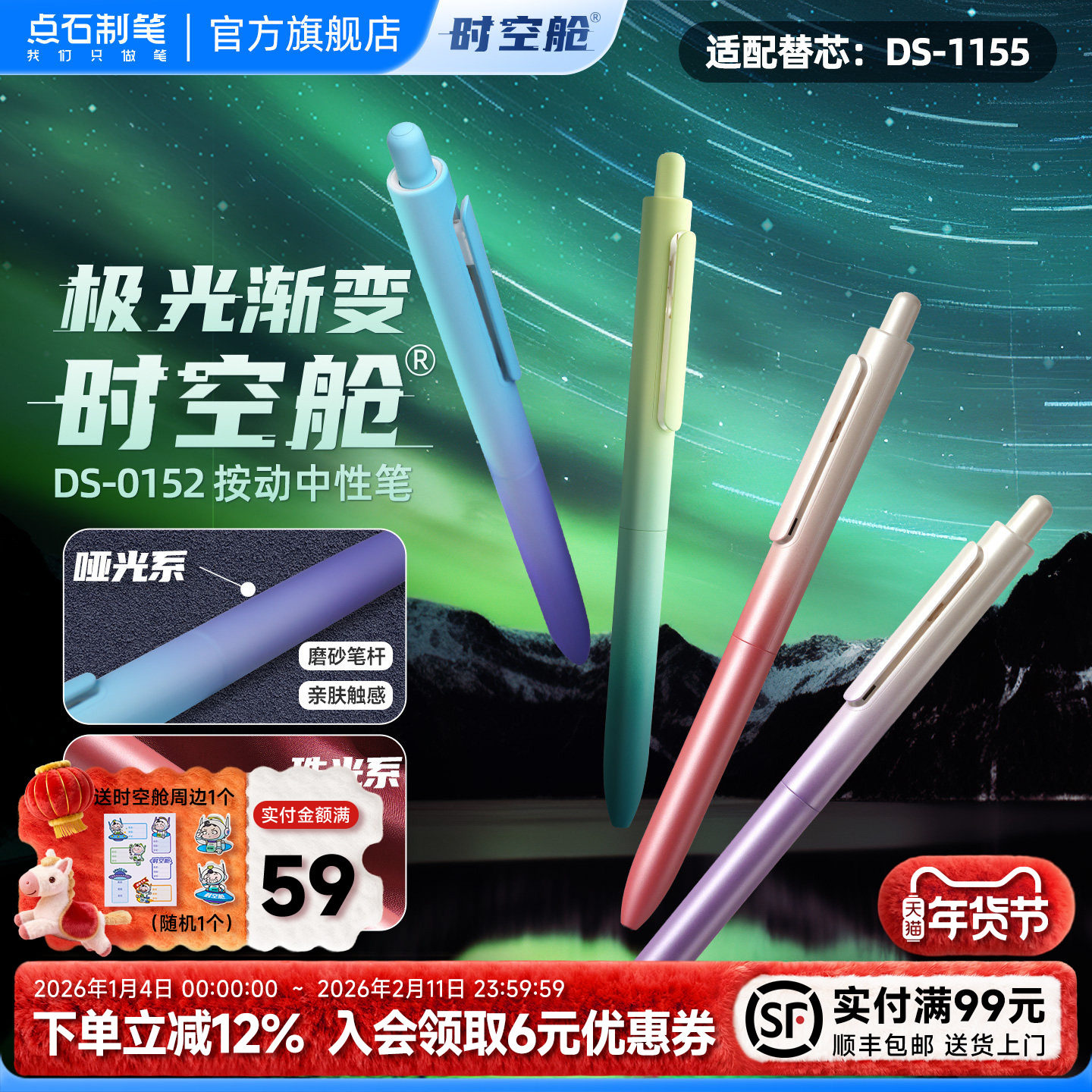 点石渐变时空舱黑色按动中性笔0.5mm速干双珠顺滑太空舱笔签字笔办公学生日常用笔刷题考研速干墨水 DS-0152
