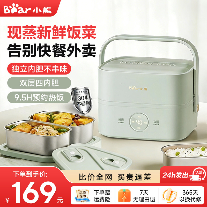小熊加热饭盒可插电上班族蒸煮热饭菜神器自热保温电热饭盒烹饪机