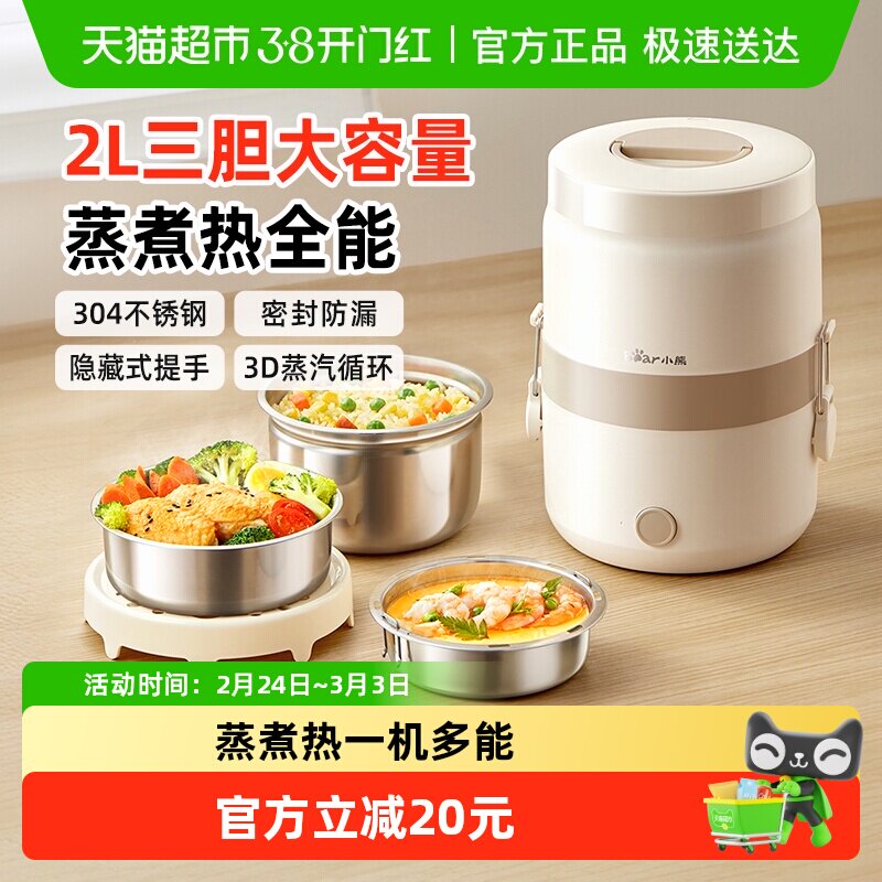 小熊电热饭盒保温上班族热饭菜神器三层便携式可插电蒸煮加热饭盒