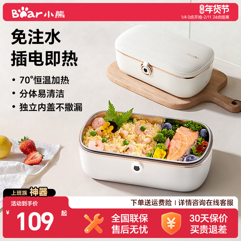 小熊电加热饭盒可插电保温饭盒上班族自热饭菜神器便携蒸煮便当盒