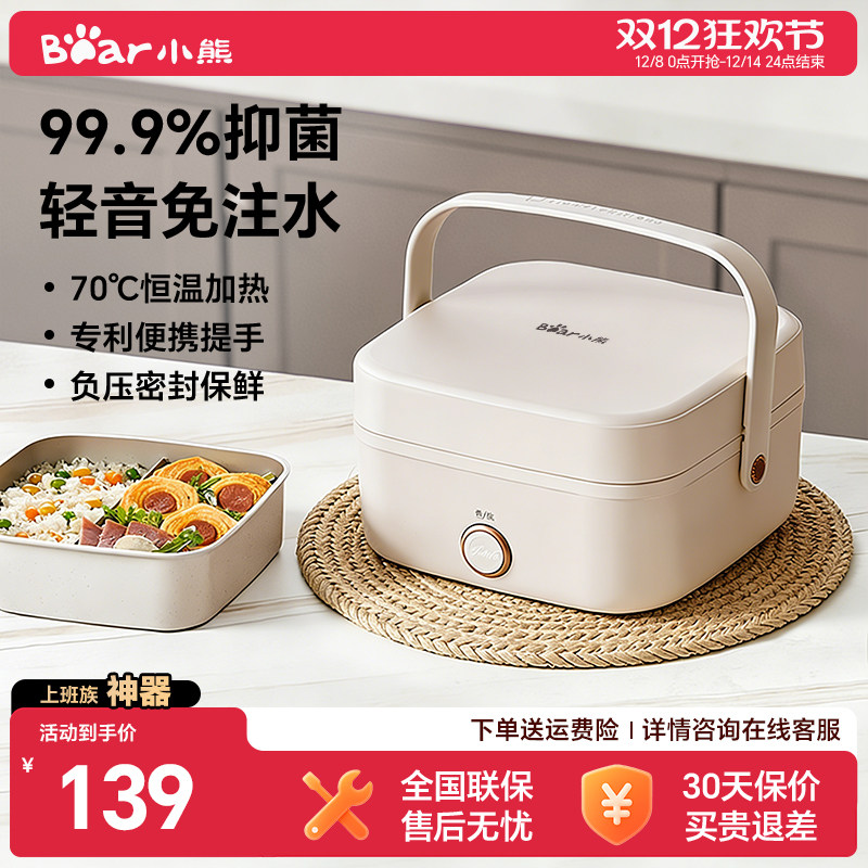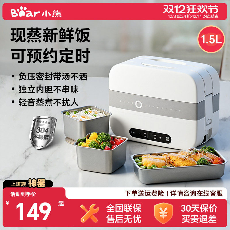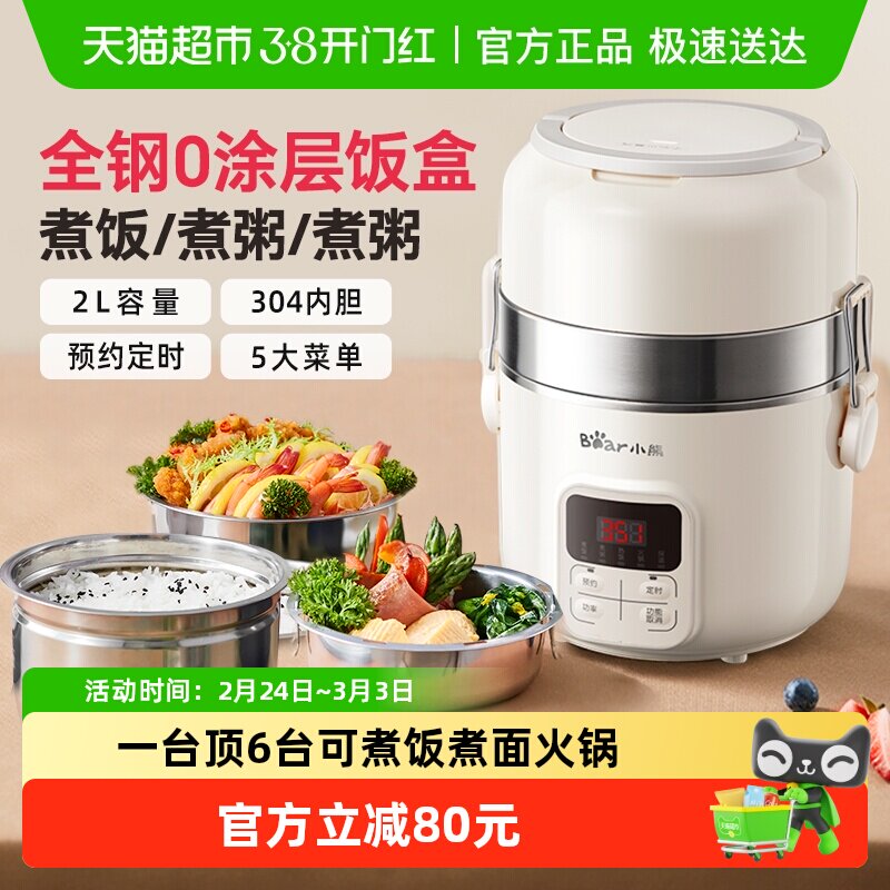 小熊电热饭盒智能加热保温蒸煮热饭神器上班族带饭加热饭盒烹饪机