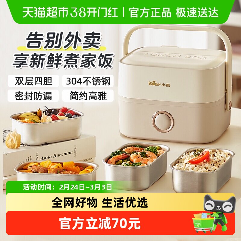 小熊电热饭盒保温烹饪机热饭菜神器料理机可插电蒸煮自热加热饭盒
