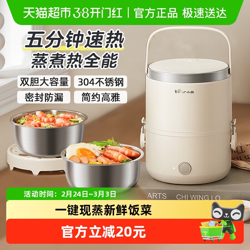 小熊电热饭盒加热保温双层蒸煮饭可插电上班族带饭神器官方旗舰店