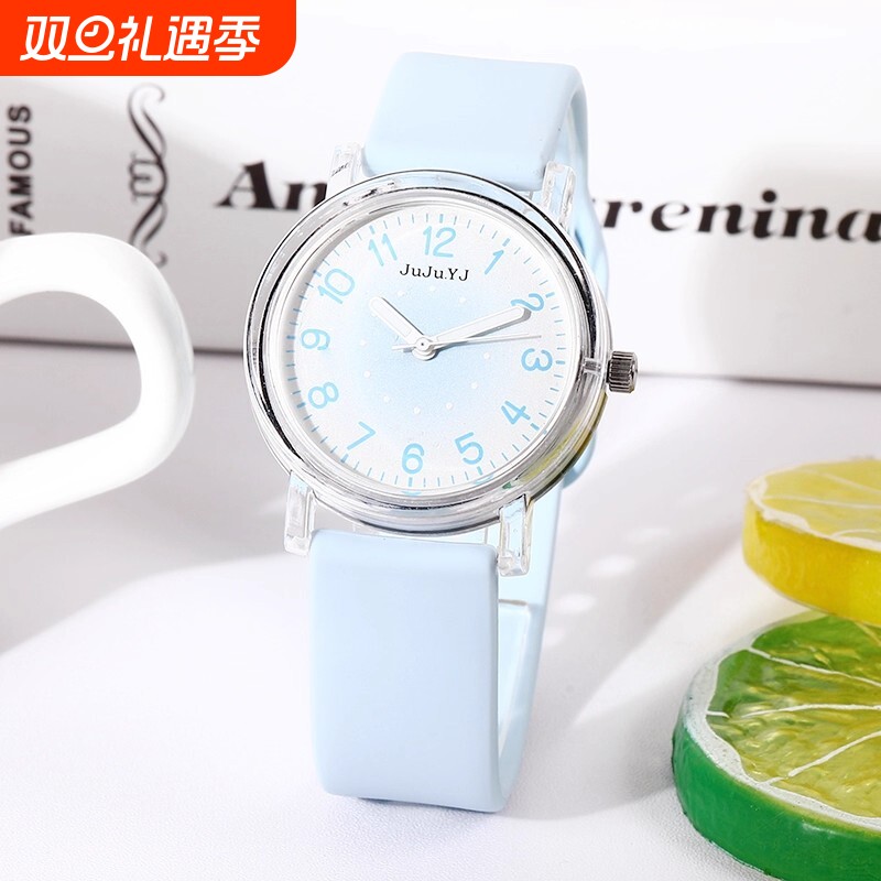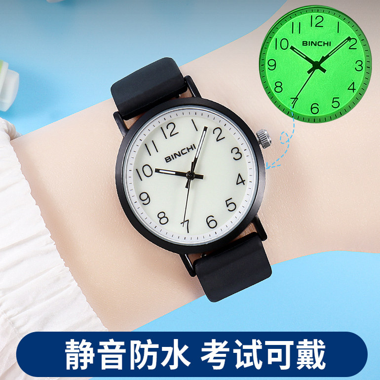 高颜值显白初高中小学生手表女孩男生石英表考试静音防水夜光柔软