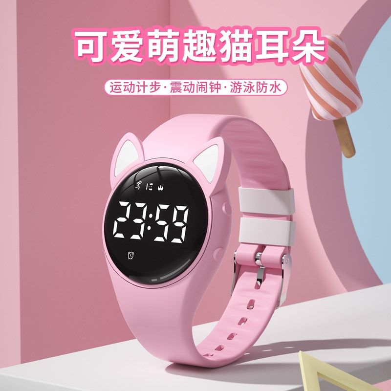 运动手表女款学生震动闹钟智能手环防水高颜值儿童手表女孩电子表