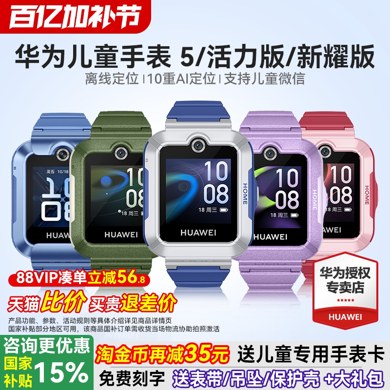 【政府补贴15%】华为儿童电话手表5官方旗舰店正品活力版智能4pro离线定位全网通防水中小学生通话男孩女孩3