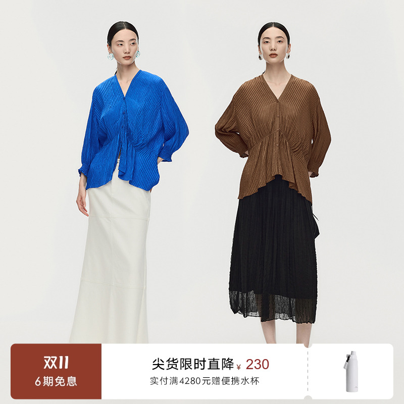 【水纹衫】AUM噢姆夏季收腰修身肌理感真丝衬衫黑色桑蚕丝上衣女