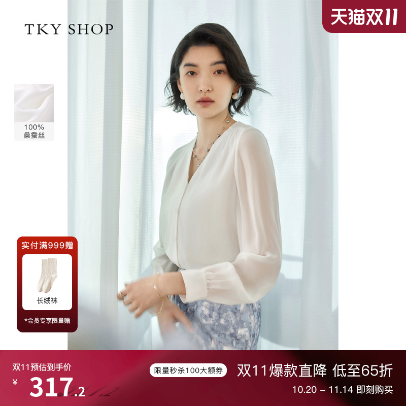 [100%桑蚕丝]TKY SHOP轻奢高级感真丝上衣女2025春新款V领衬衫女