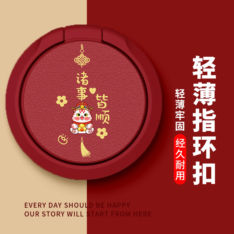 佳朗诸事皆顺招财猫手机支架适用苹果安卓华为小米旋转支架指环扣自粘黏贴男女通用保护套卡通情侣360°自拍