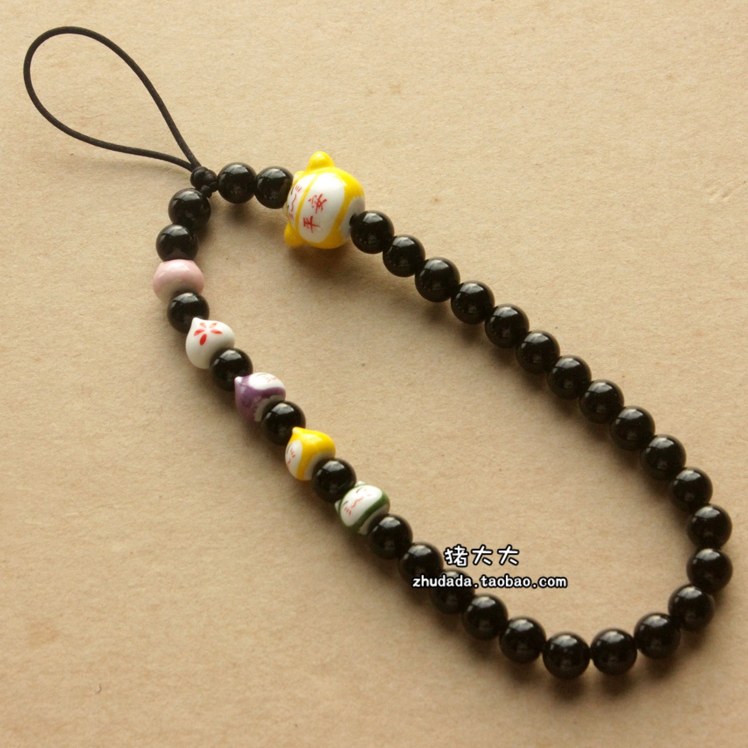 包邮套手腕手机链挂件吊饰防丢绳本命年陶瓷招财猫红绳超结实耐用