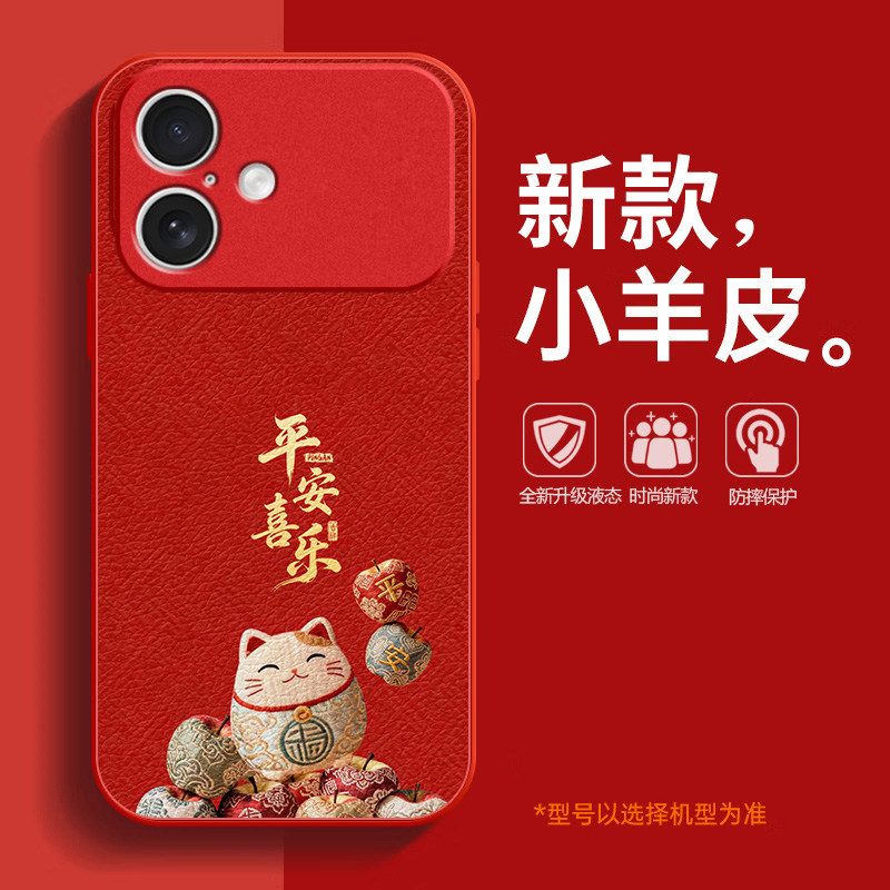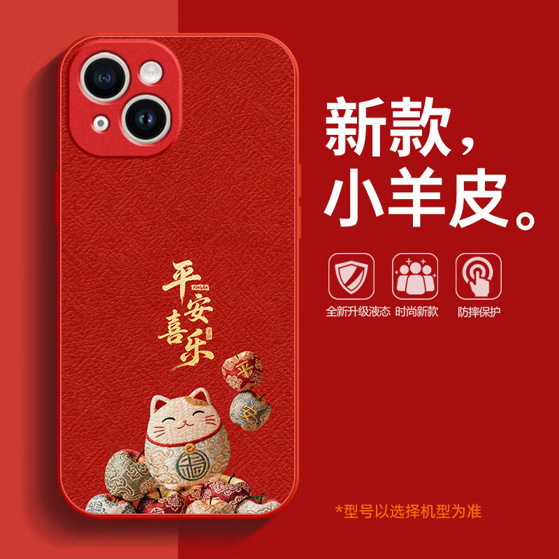 适用苹果17promax手机壳2026马年iPhone16平安喜乐15好运14plus新年款13招财猫12mini发财xr本命年11红色8套7