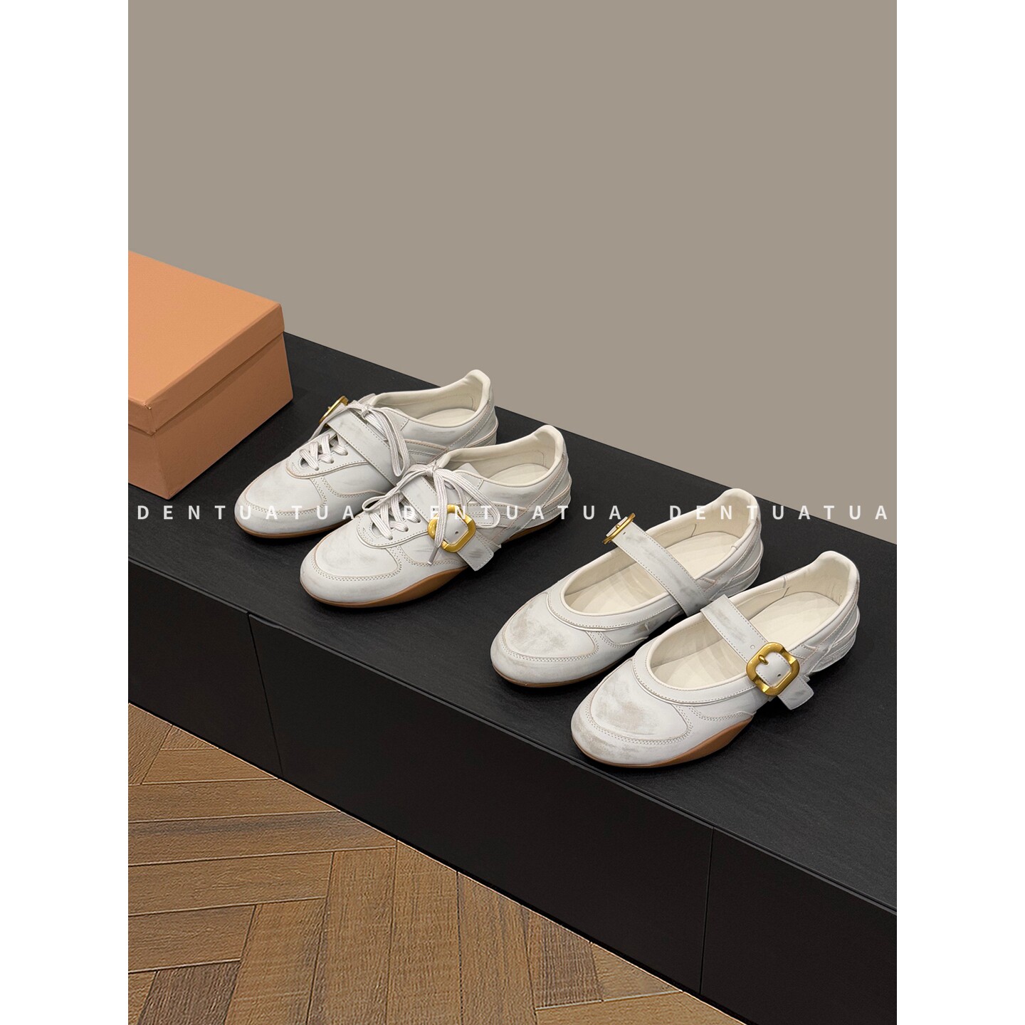 DENTUATUA 甜到心跳加速!26ss 做旧系带雕花一字带布洛克单鞋 女