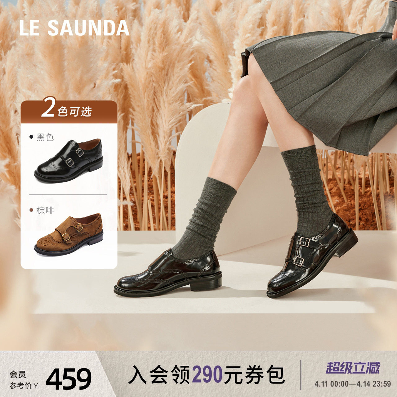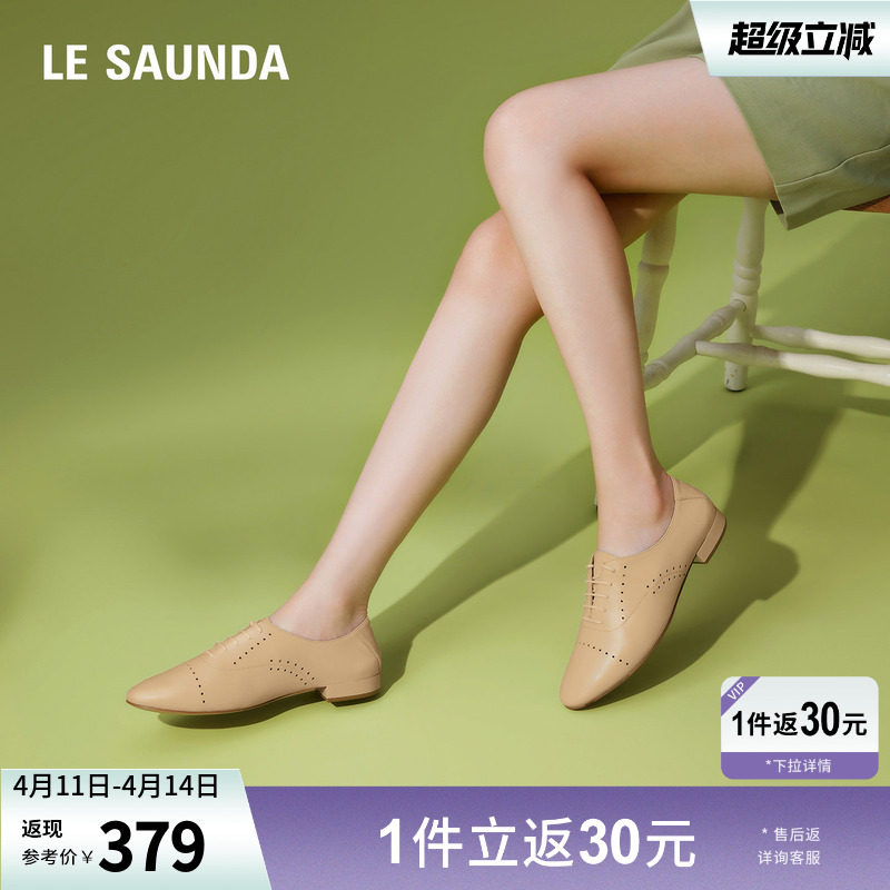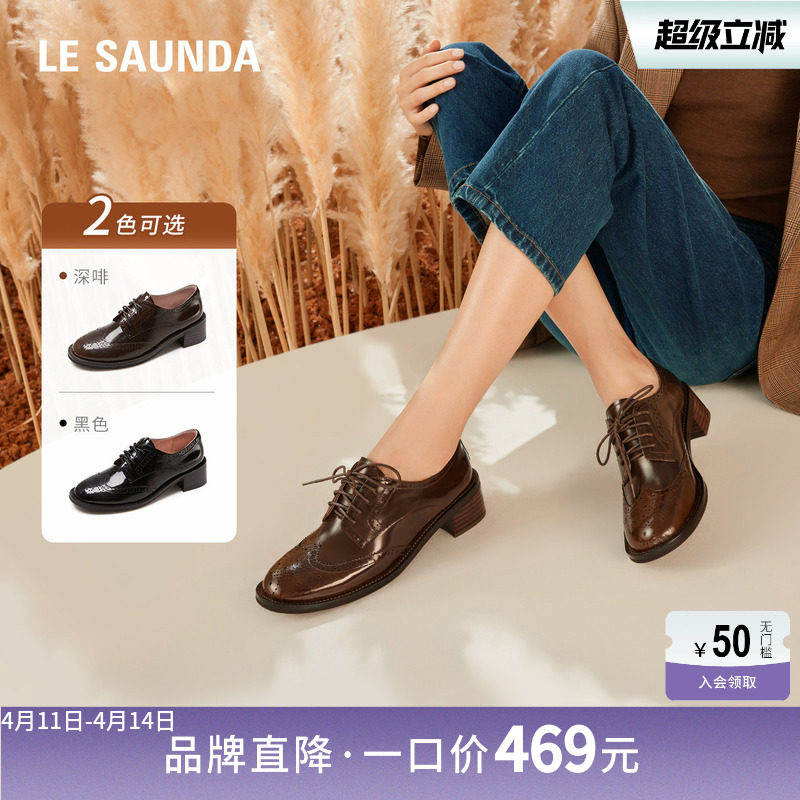 莱尔斯丹奥莱春夏复古系带低帮布洛克深口牛津女单鞋通勤5M14401