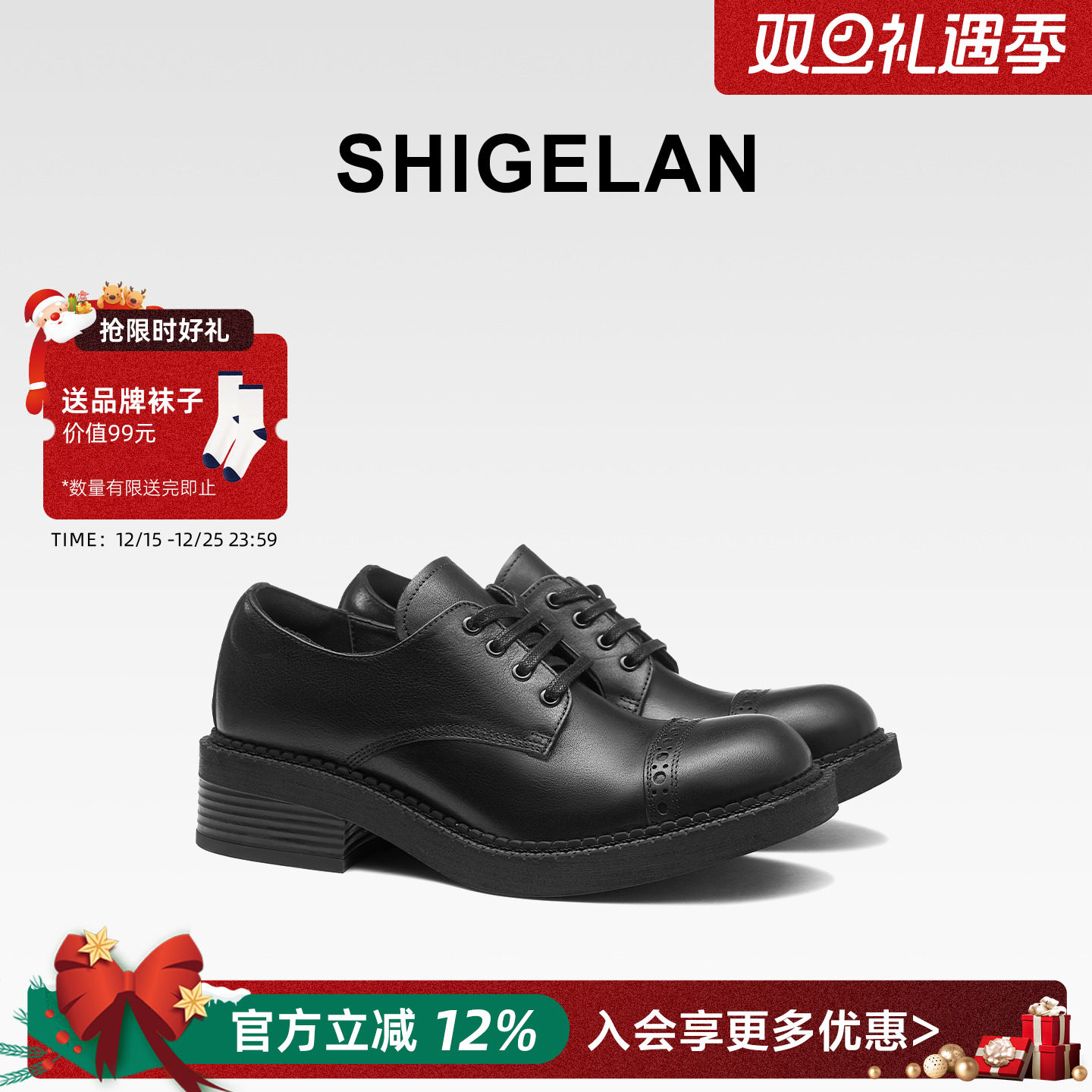星期六棕色皮鞋女2025新款秋冬厚底系带单鞋女士乐福鞋布洛克单鞋