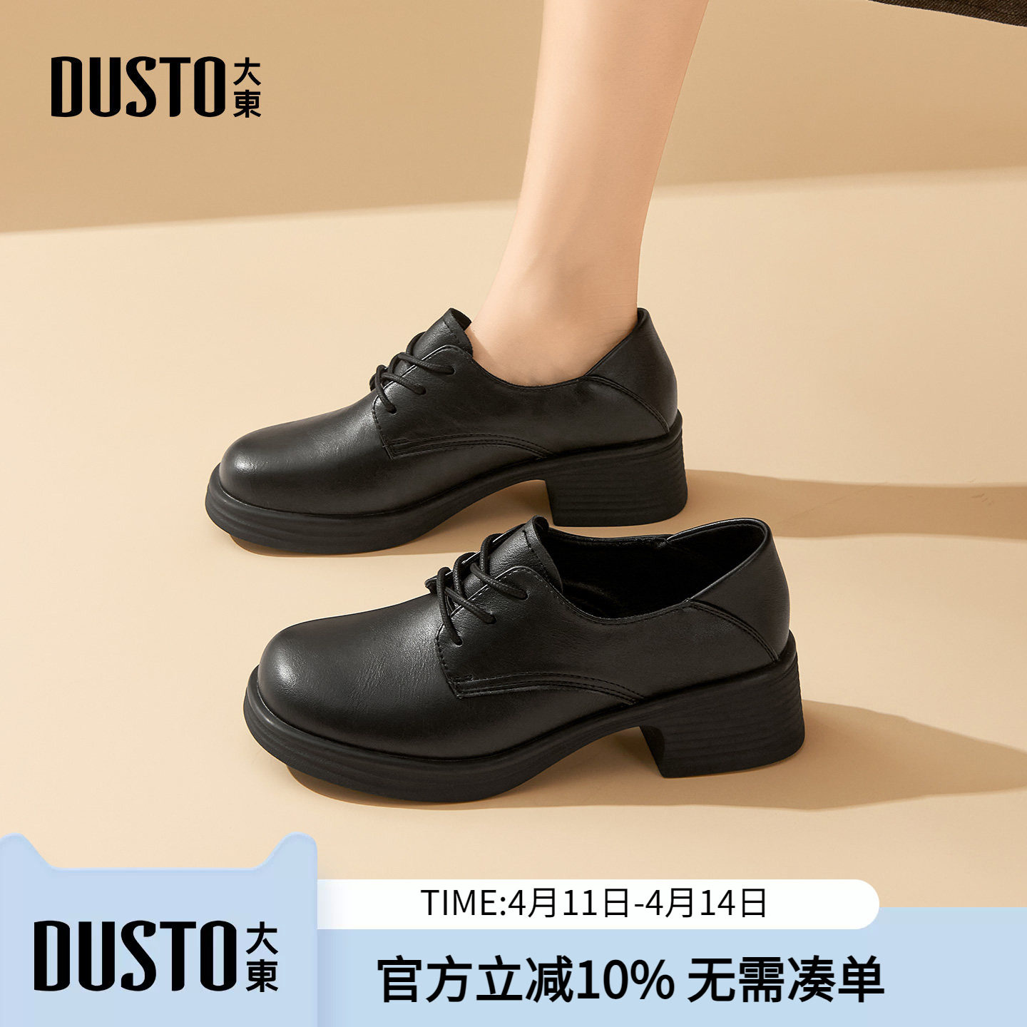 大东dd小皮鞋系带布洛克女鞋2026新款春季通勤百搭乐福深口单鞋女