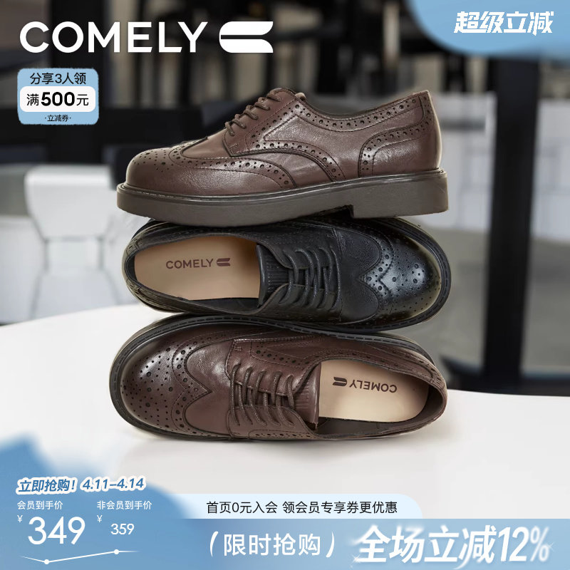 Kmeizu巨软~雕花布洛克平底单鞋女新款真皮小皮鞋系带商务德比鞋