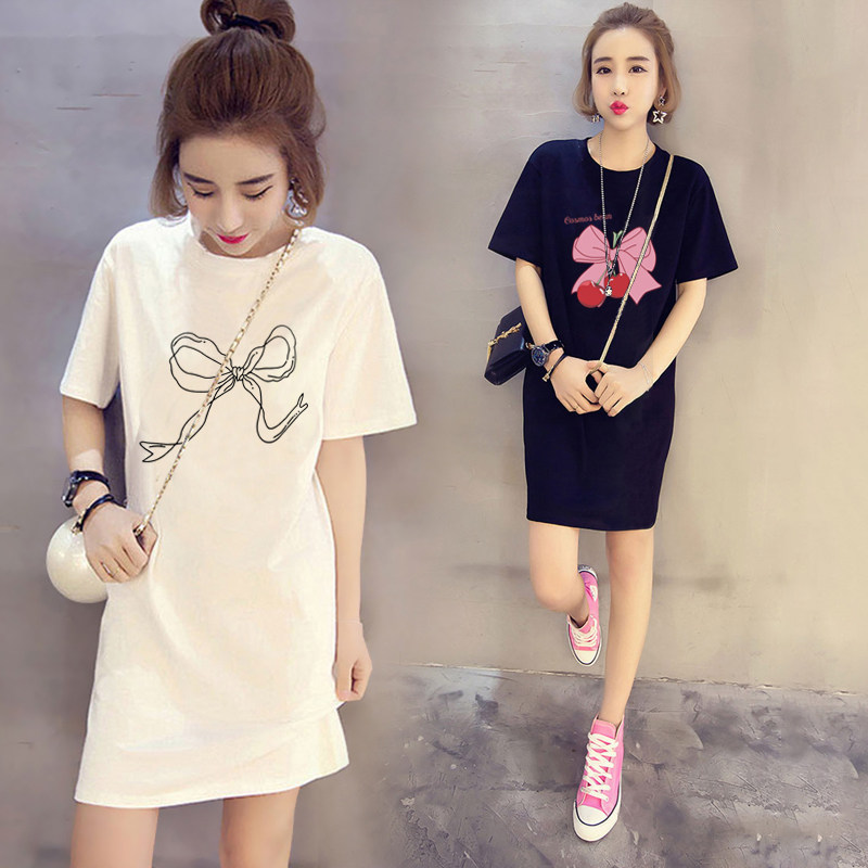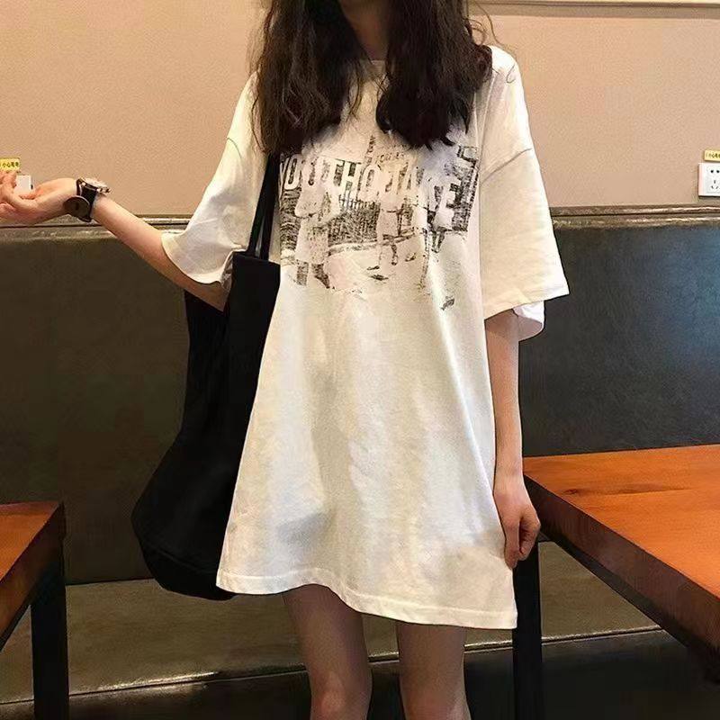 夏季短袖t恤女中长款下衣失踪高个子加长版遮屁股连衣裙直筒上衣