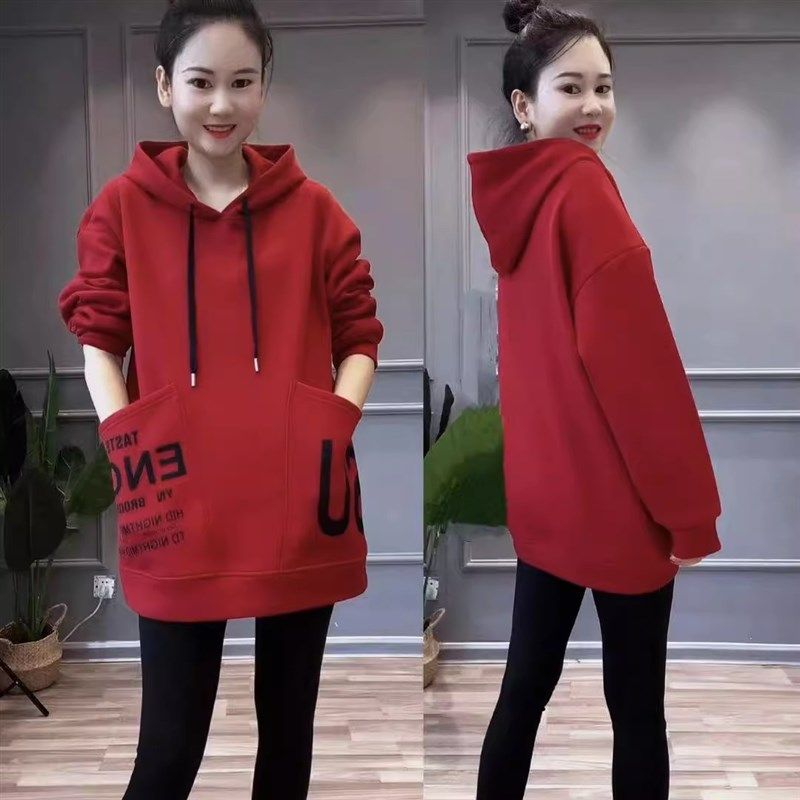 中长版卫衣女士2023年冬季新款加绒加厚爆款时尚洋派连帽保暖上衣