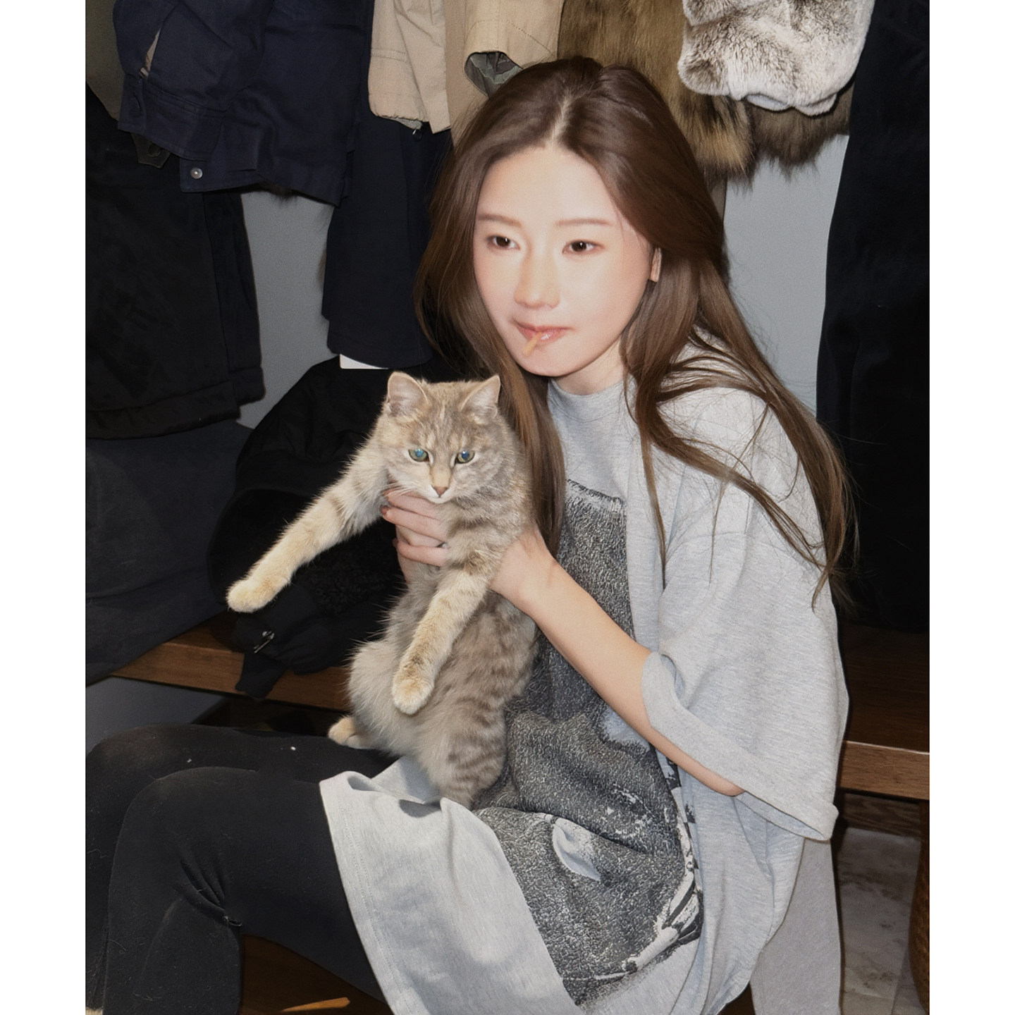 CHU楚妞[默像]棉精仿长版人像印花短袖T恤2025秋季新款女百搭上衣