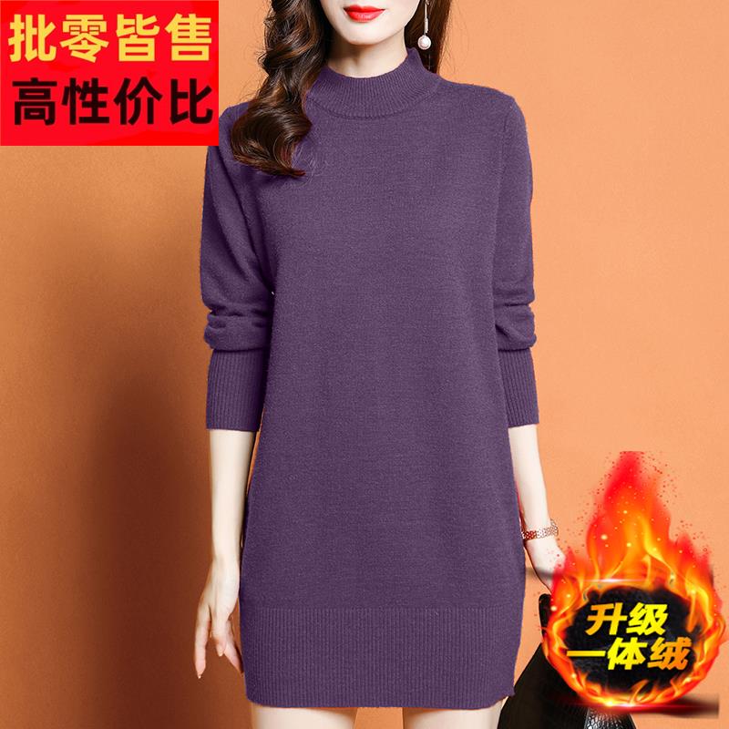 毛衣女秋冬胖mm大尺码宽松遮肚上衣中长版羊毛加绒加厚针织打底衫