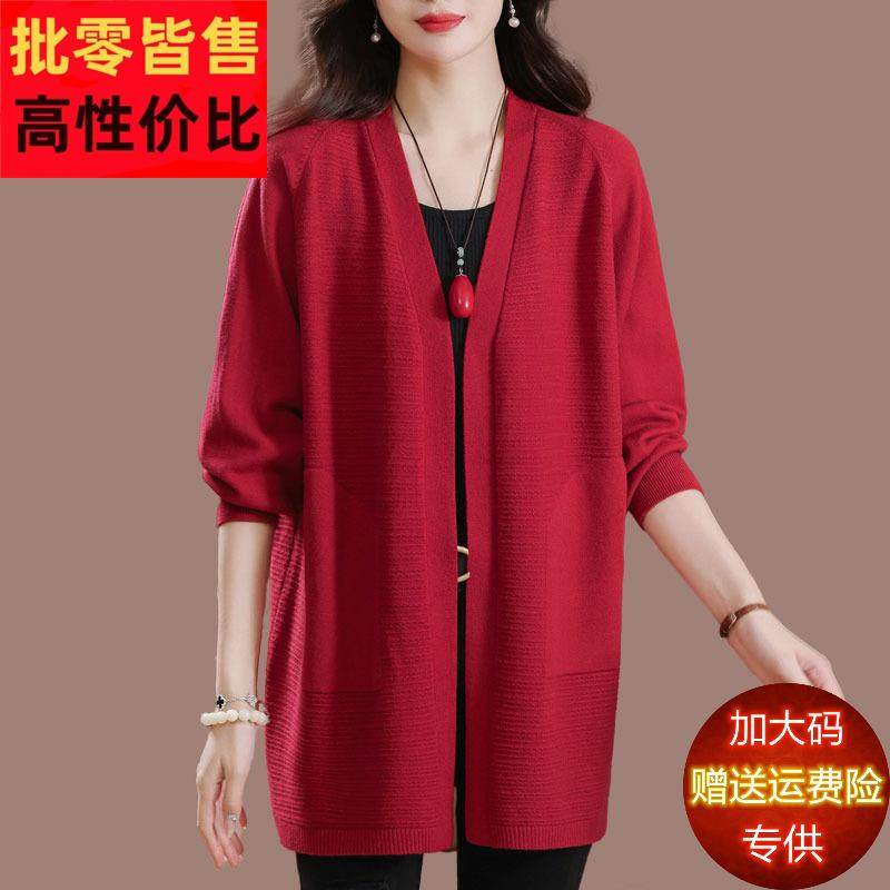 加肥加大码中长版针织羊毛衫女开 衫时尚宽松蝙蝠衫毛衣外套上衣