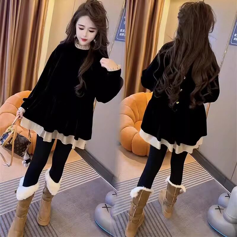 秋冬打底衫女卫衣内搭中长版磨毛长袖T恤搭配鲨鱼裤的上衣1224z