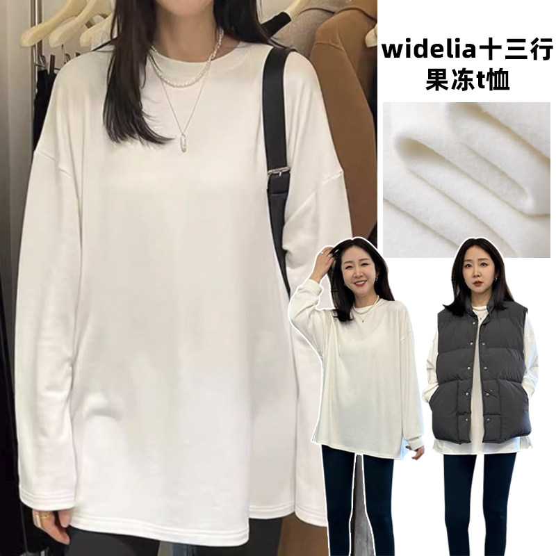 加绒打底衫女中长版宽松内搭插肩T恤配鲨鱼裤的上衣遮屁股秋冬款