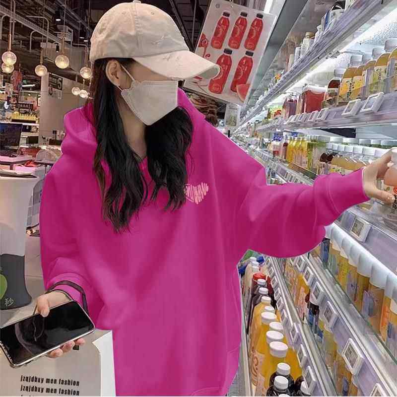 欧洲站火龙果色连帽运动衫女2025新款爆款春秋冬季加绒中长版上衣