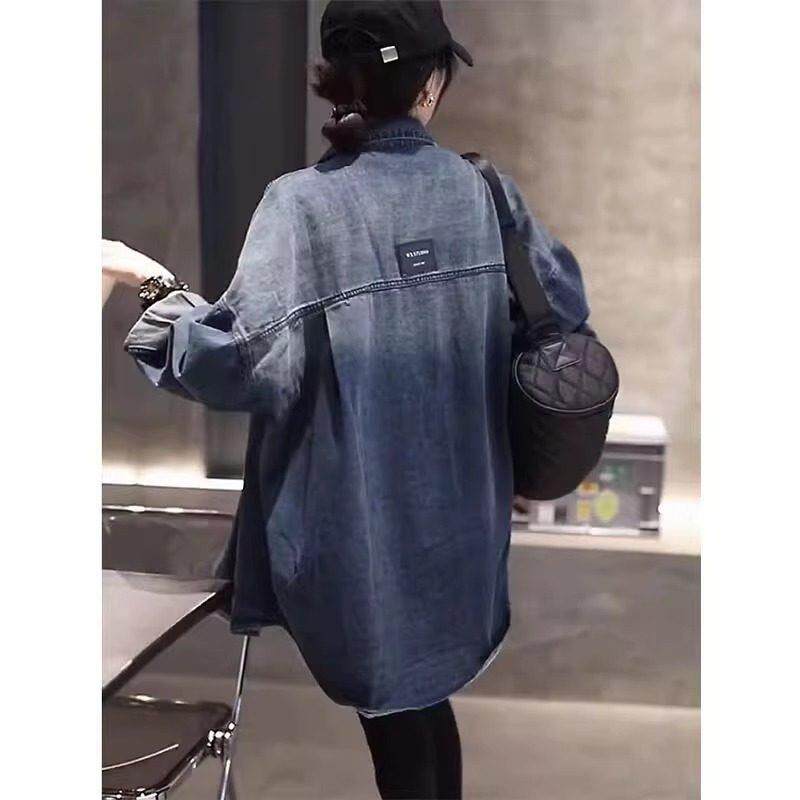 韩版黑色牛仔衬衫女2025夏季新款中长版休闲 百搭衬衣叠穿上衣外