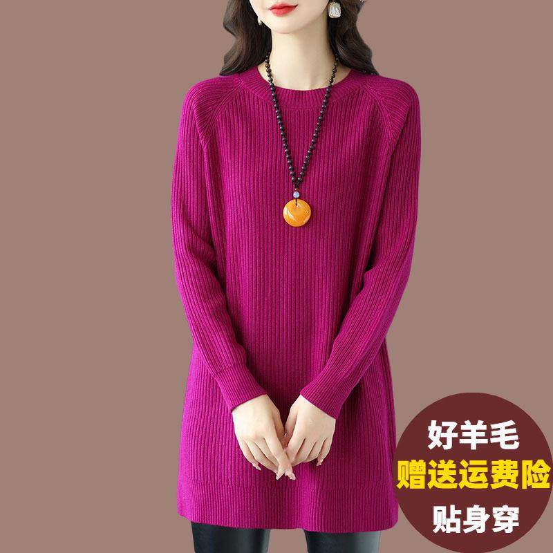 羊毛衫中长版毛衣女秋冬遮屁股针织衫宽松胖mm200斤羊绒打底上衣