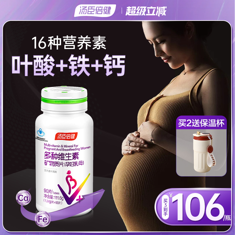 汤臣倍健孕妇专用多种维生素复合叶酸钙铁锌片孕期哺乳期官方正品