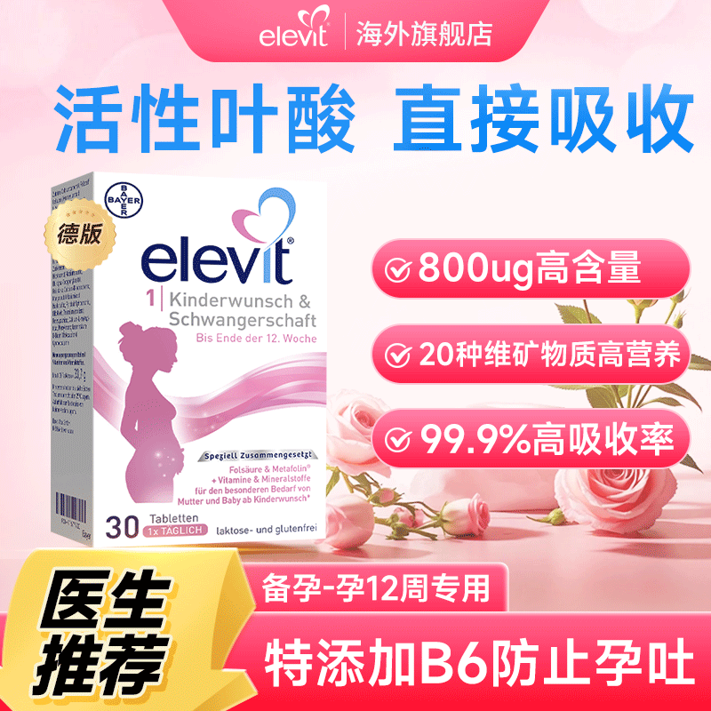 【旗舰店】Elevit爱乐维孕妇专用复合维生素叶酸片全孕期哺乳期用